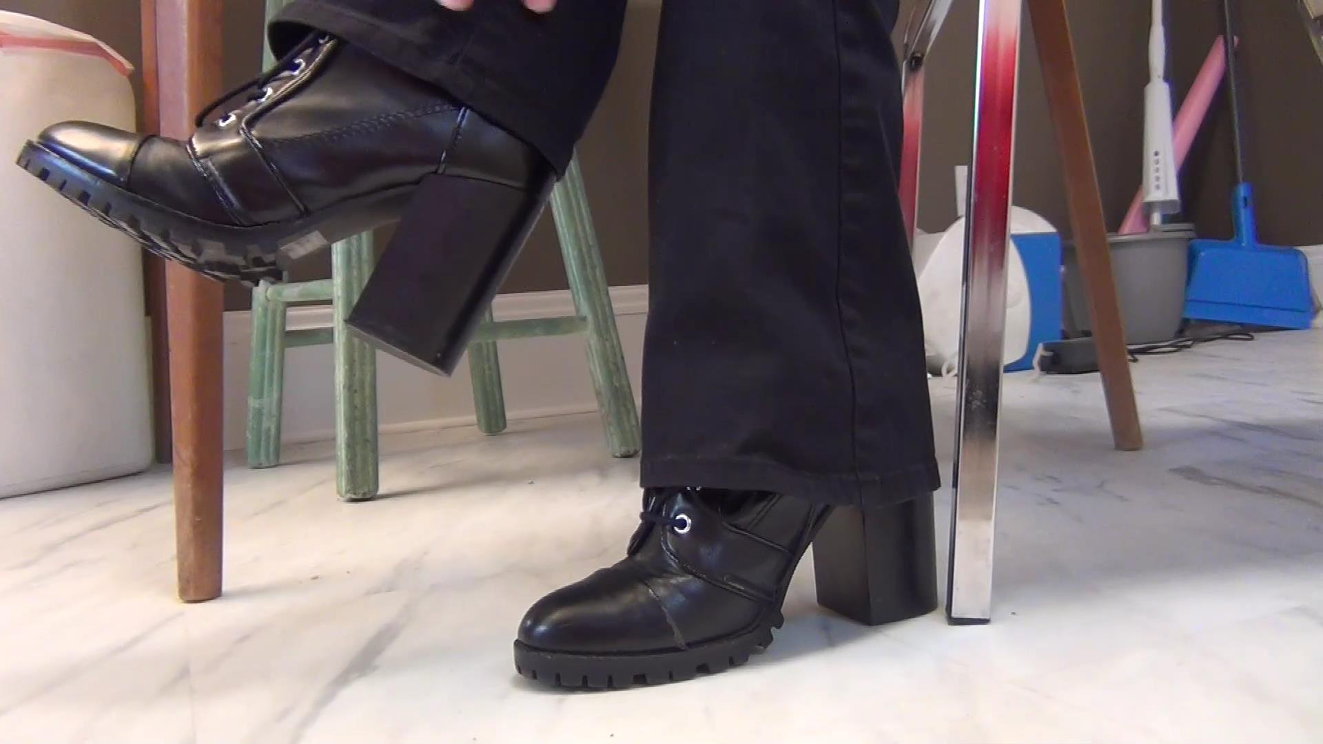 Mitzy is coming home from a long day of shopping, her feet sore and sweaty in her long black zip up boots. She takes her jacket off and puts her bags down when she comes inside and then walks into the kitchen. Mitzy goes to the fridge and gets a drink before sitting down and crossing her ankles and legs. She talks about her sore feet and sweaty boots to herself and then she gets a call from her friend. They talk about Mitzys shopping day and if she got everything she needed. She tells her that she got just about everything but her moms gift, her friend tells her to go online and she'll find it there. Mitzy tells her that she'll do it later and thanks her friend before getting off the phone and walking to the couch, lighting a cig, and relieving her soles from the enclosed boots. Her feet are stinkin'! After stretching her toes and scrunching them for a minute she takes her socks off, scrunching her toes some more before taking a shower. She goes upstairs and when she's done, comes back down in a robe. Mitzy sits down on the chair at her desk and her wrinkles are very prominent now. After ahwile she finally finds the gift for her mom!