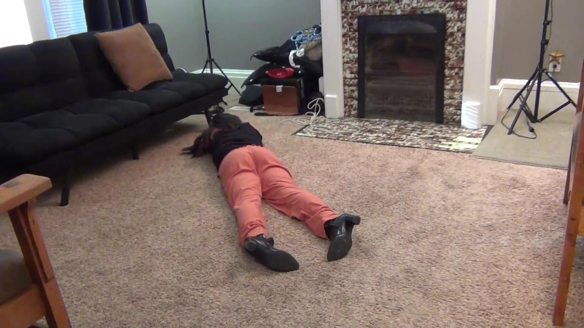 Riley is the neighborhood thief but she goes by "Desiree Lawson" and she has got her eyes out on Mitzy's home. She breaks in, thinking that no one is home and starts ravaging through her things, shoving Mitzy's laptop and other items in her bag. Riley thinks she's in the clear, not even noticing that Mitzy is in the home. Mitzy sneaks up behind Riley and wrestles her trying to bring her down. Mitzy snaps her neck and Riley falls to the floor. Mitzy goes through Riley's bag, finding her things is making her even more upset! Mitzy finds Riley's ID and it says Desiree Lawson. She tells "Desiree" that they're gonna have some fun and Mitzy giggles. She has her wrapped up in a red sheet and begins taking off her boots, sniffing the inside of them. She tells Riley's limp body that she's heard A LOT about her. She takes the socks and shoes off Riley and begins licking and kissing on Riley's legs and sexy soles, taking pictures, and enjoying the fact the Riley tried her house! She puts a pair of heels on Riley to see how they look on her. Mitzy rubs Riley's feet up and down on Mitzy's pussy, humping her soles until she orgasms. When Mitzy's done with her fun she drags Riley's limp body to her truck and throws her in the trunk, licking her soles one last time before she drives off to feed Riley to the crocodiles!