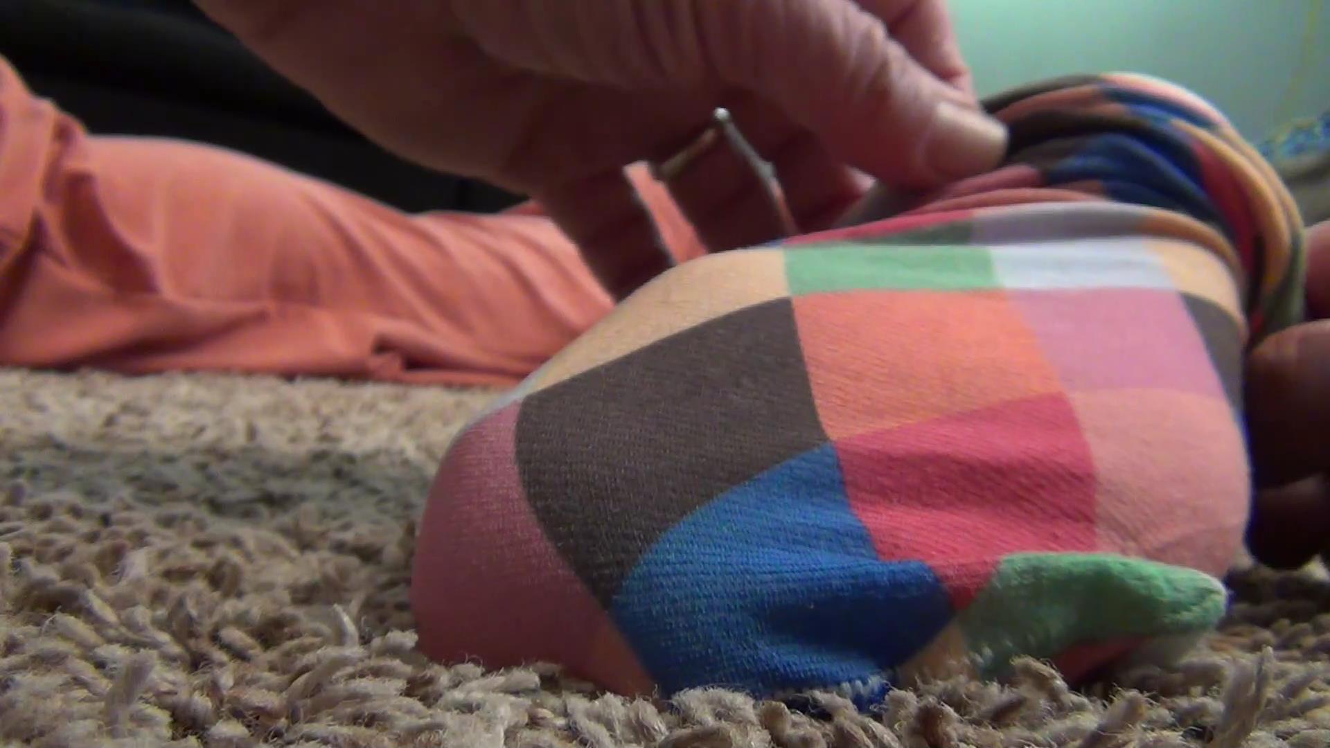 Mitzy is laying face down on the floor taking a nap before work. After checking to make sure she's sleeping, you carefully go down to her sweet sexy feet and slowly and gently puts on a pair of opaque nylon ankle socks on Mitzy's feet. Mitzy moans slightly and you sneak out of the room. Mitzy pulls the socks up not noticing that they weren't there before. She goes off to work and when she gets back you're sitting on the floor. She walks in and smiles at you, grabbing a pillow and lays down in front of you. Mitzy is on her belly again, taking a nap. You massage and admire her feet until she notices you. She watches you enjoy her stinky feet, shoving her sweaty socks in your face. You love the smell, Mitzy lets you do what you're doing and lays back down on her belly to nap some more.